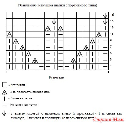 2) все чётные ряды вязать по узору (кроме 16-го ряда)