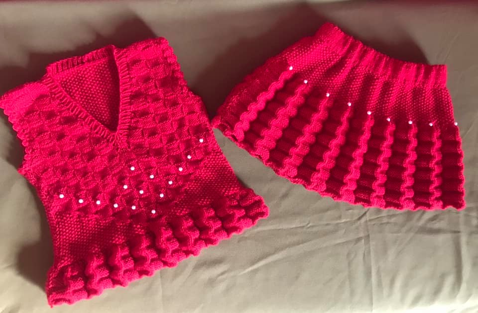 1. For the skirt, I cast on 164 stitches and knitted 24 rows of 1x1 rib