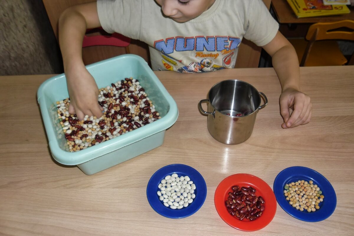 4. Игра "Золушка". Смешиваем 2-3 вида круп и просим ребенка перебрать их.