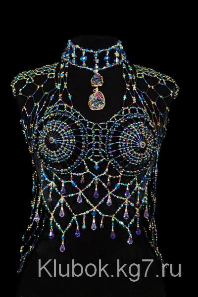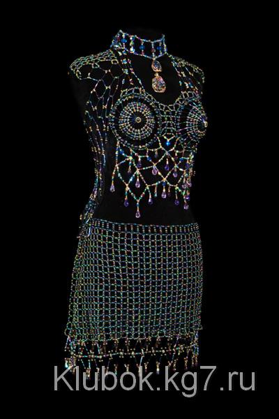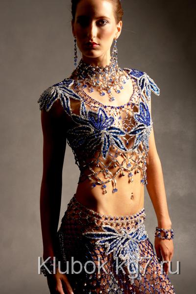 Но сегодня бисер снова манит своим разнообразием. Эти стеклянные капли завораживают и чаруют. Посмотрите только на эти платья, созданные без использования различных тканей материалов. Основой здесь служит только бисер.