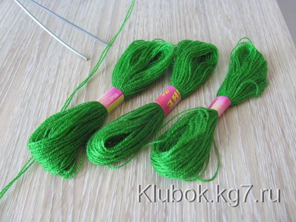 Берём ниточки мулине,обматывем ими ветки дерева.