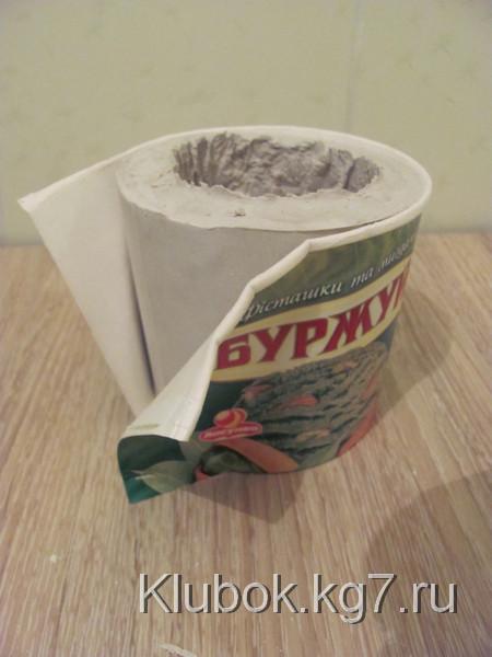 после обмотки надо промазать клеем пва.Теперь перейдём к отливу форм из алебастра.Нужен алебастр и картонная баночка от мороженого.
