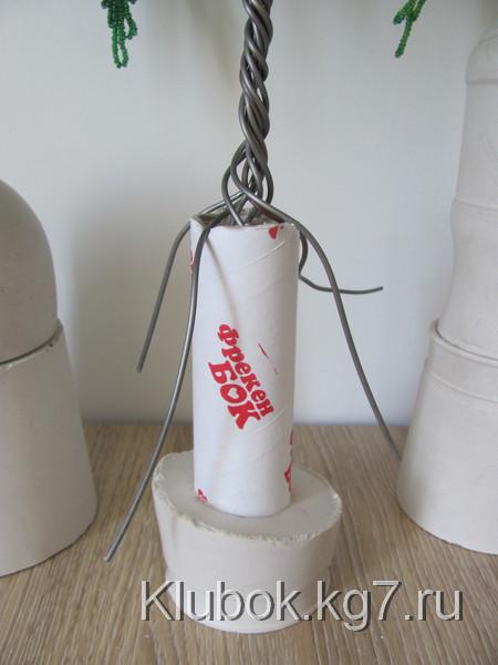 Вот так закрепляем иву.Корни-проволочки пропущены в трубочку от фольги и залиты там гипсом.