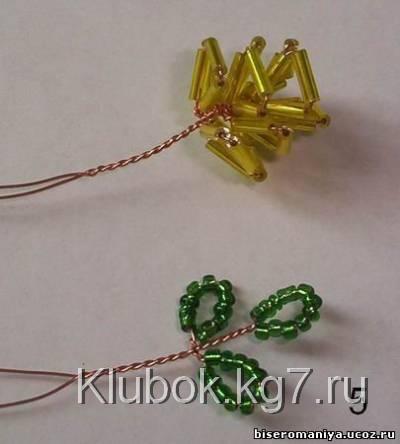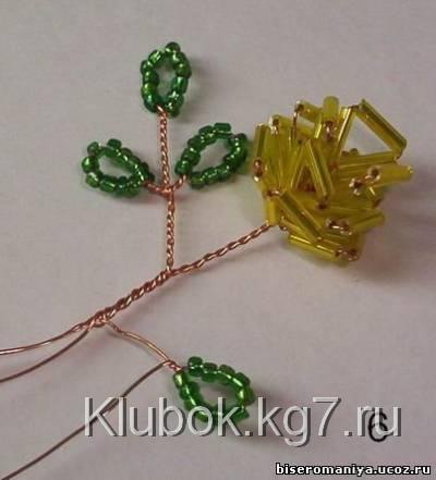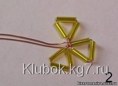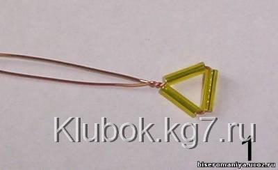 сложенной пополам проволоке делаем петельку из трех стеклярусинок.