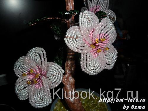 Те, кто освоил французское плетение, уже по этим двум фотографиям сразу же поймут, каким образом плетется цветущий персик из бисера.