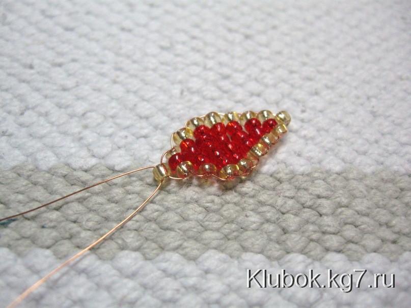 от мотка, набираем одну бисерину и пропускаем второй конец навстречу первому.