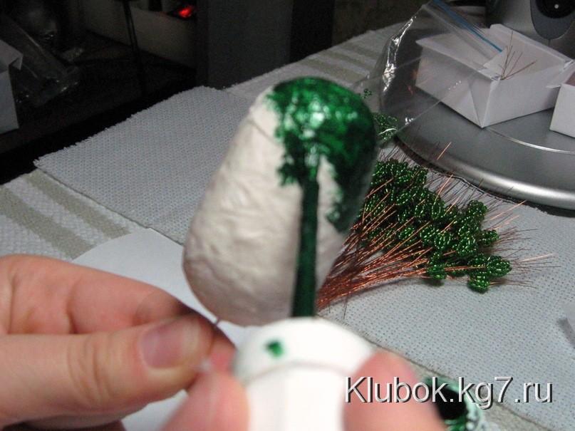 10х2 см, смазываем клеем ПВА и обклеиваем пенопластовое яйцо-заготовку. Даем
