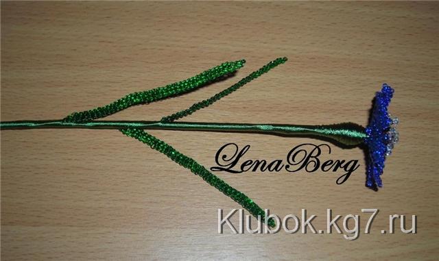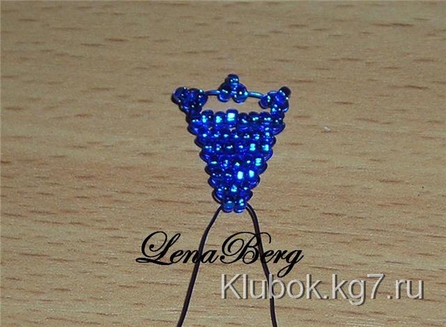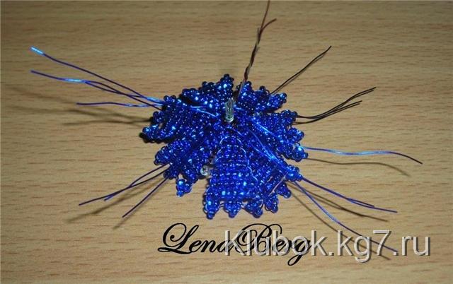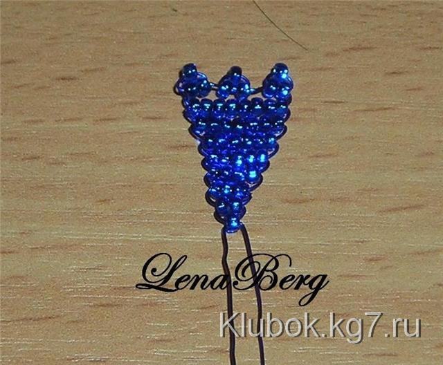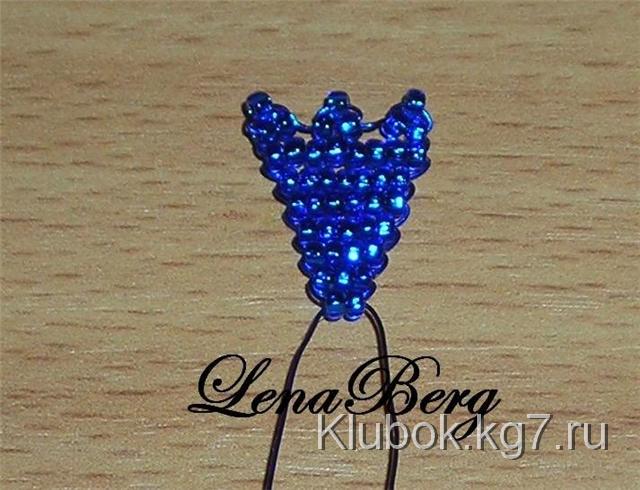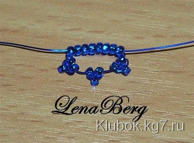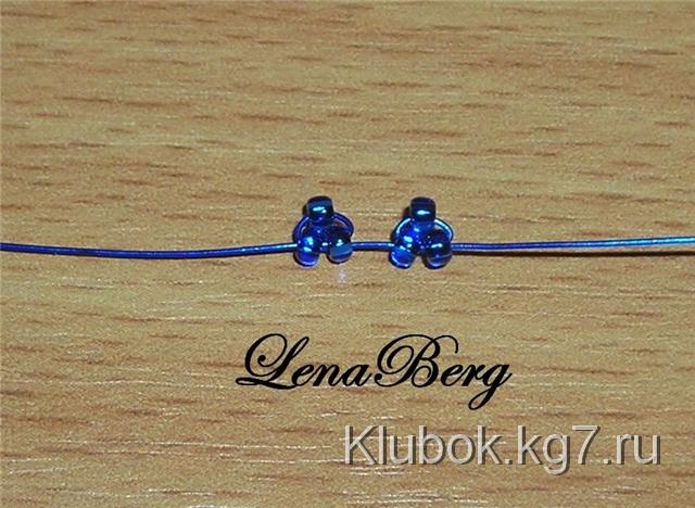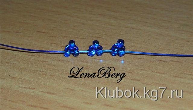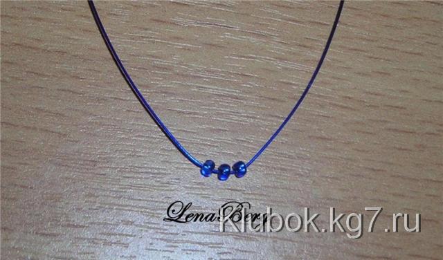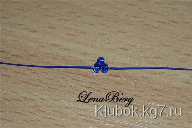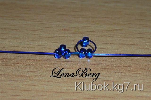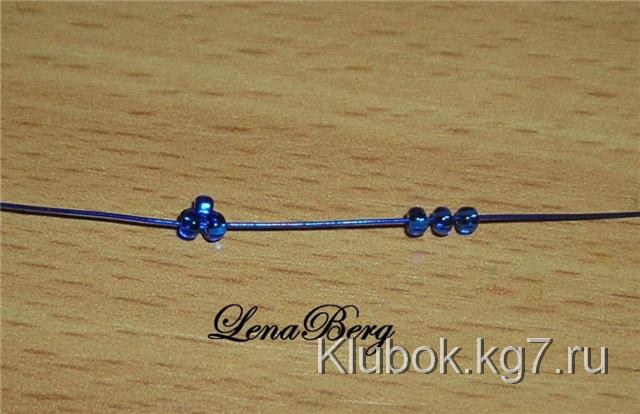 На центр проволоки синего цвета набрать 3 бисеринки.