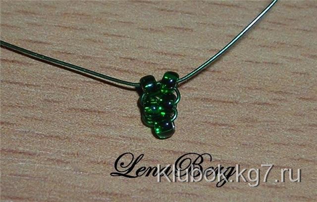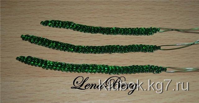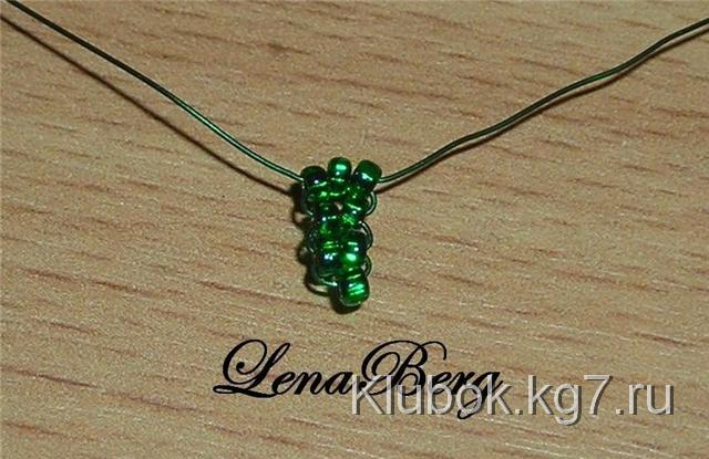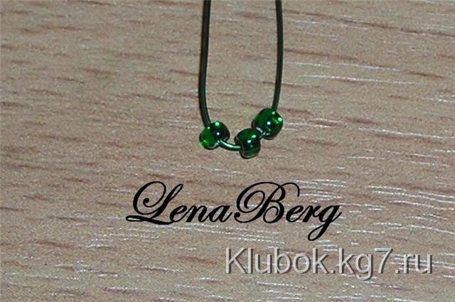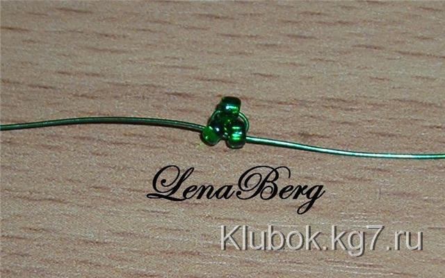 зелёную проволоку длиной 50 см набрать 3 бисеринки.