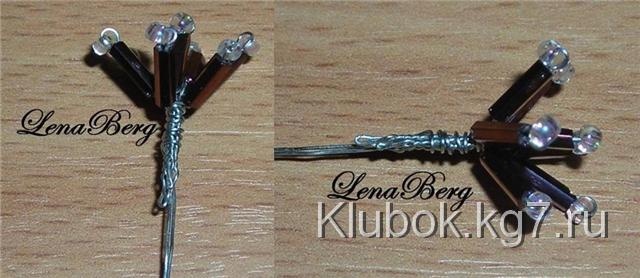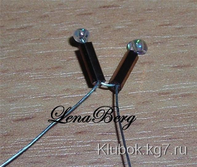 один конец проволоки через 2 бисеринки.