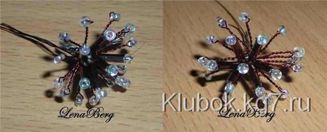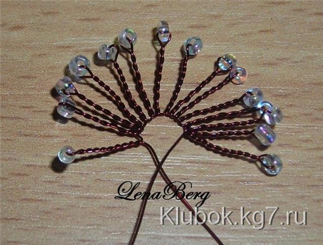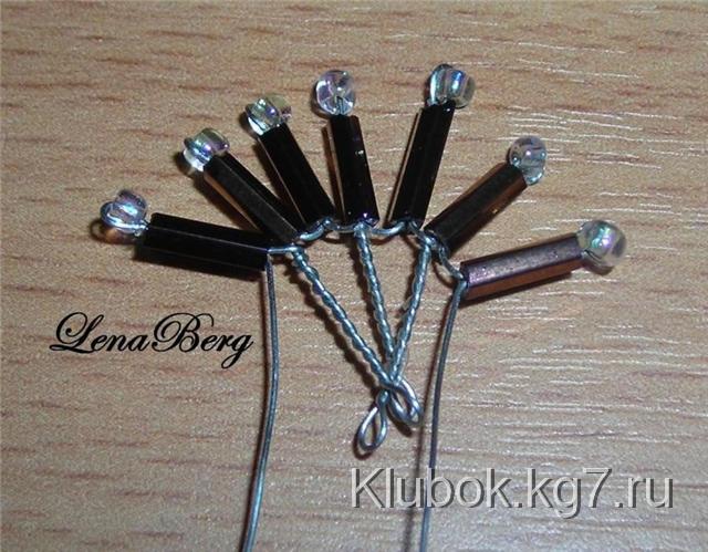 из тычинок обмотать вокруг тычинок из стекляруса. Свободный конец проволоки