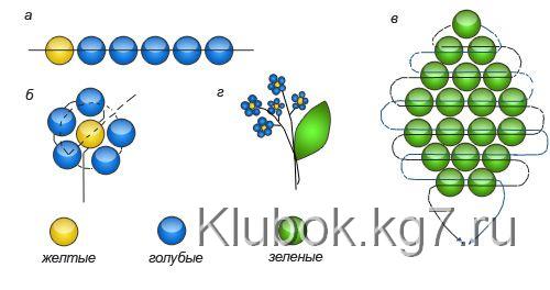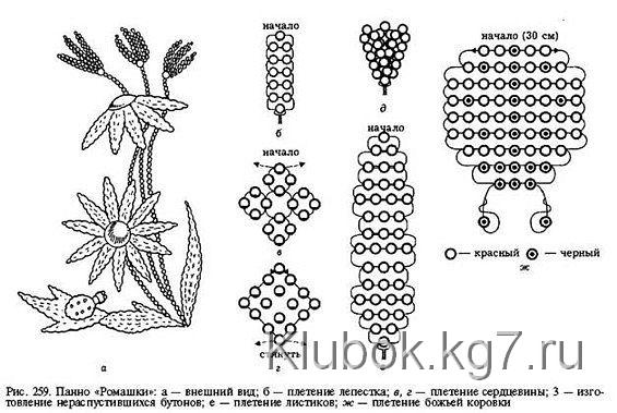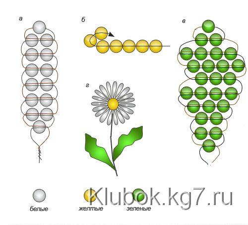 Если Вы ещё ни разу не плели цветы из бисера, советую потренироваться на следующих простеньких схемах незабудки и ромашки: