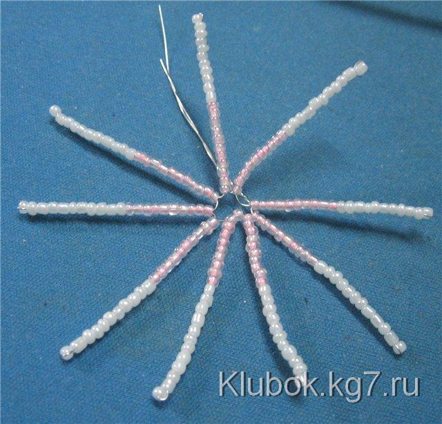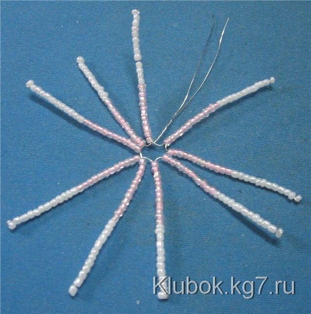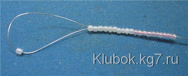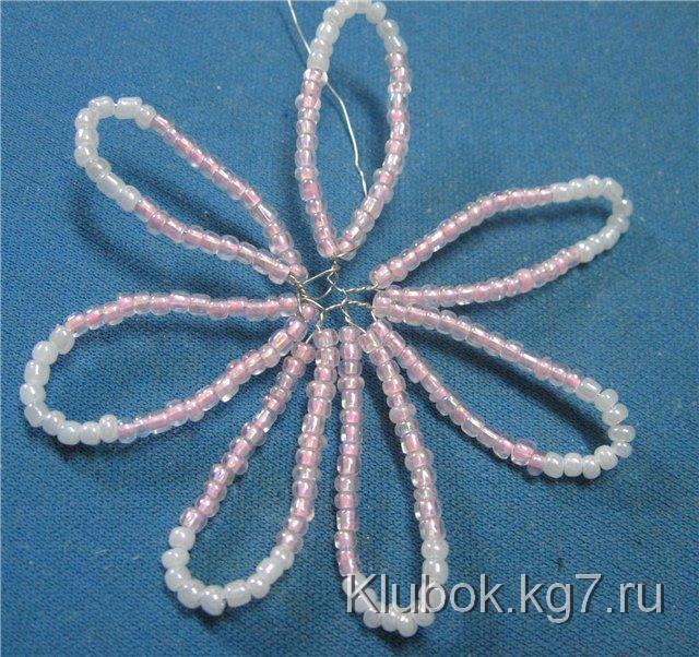 Набираем 15 розовых бисерин - 5 лепестков- всего 2 венчика.