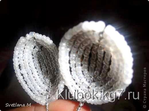 Изготавливаем лепестки в "Французкой"технике,где на ось набираем 10 бисеринок и вокруг оси 12 рядов.