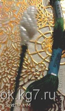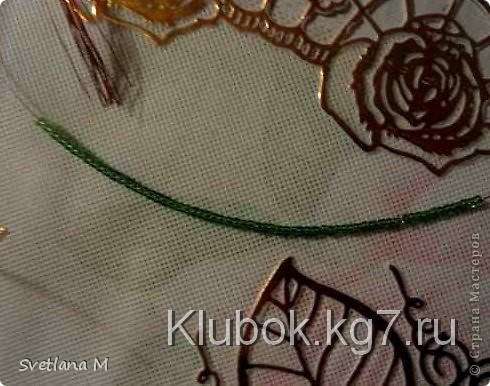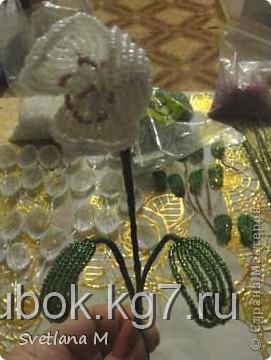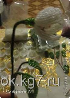 Теперь делаем ножку подснежнику,берем жесткую проволоку и нитки" мулине-зеленые".