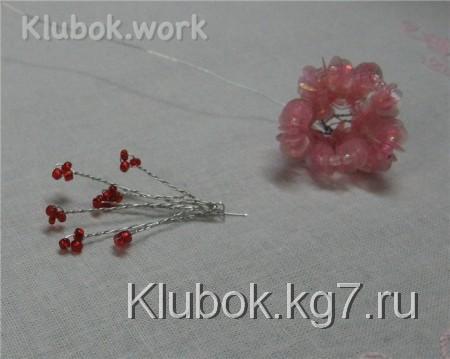 Так делаем до тех пор, пока проволока не закончится, формируя при этом тычинки разной длины. Собираем их все в пучок.