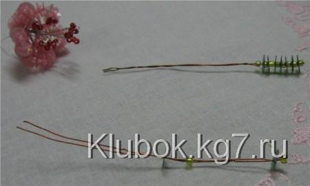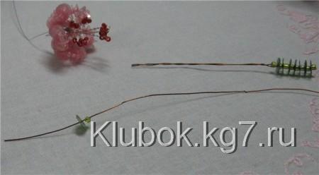 Так делаем до тех пор, пока проволока не закончится, формируя при этом тычинки разной длины. Собираем их все в пучок.