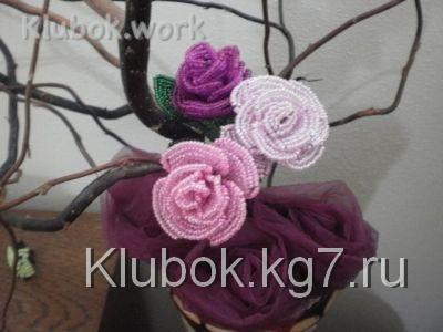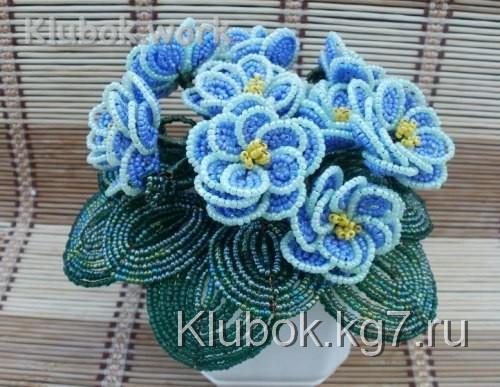 5. Получив 4 проволоки с нанизанным бисером, переплетите их между собой, спрятав проволоку так, чтобы были видны только бисерины.