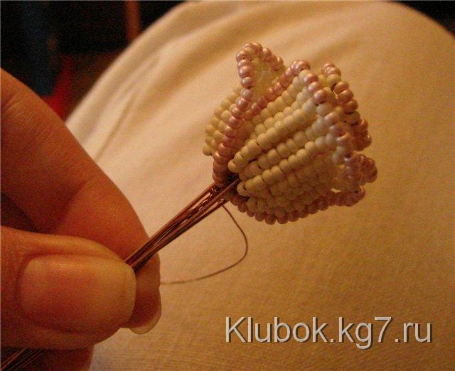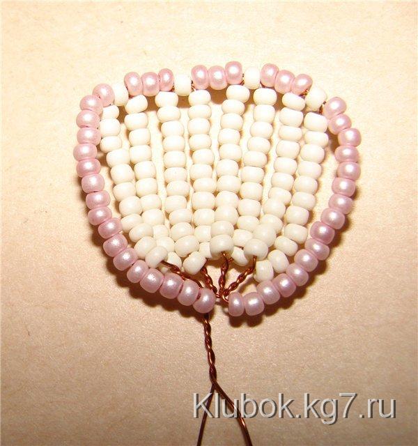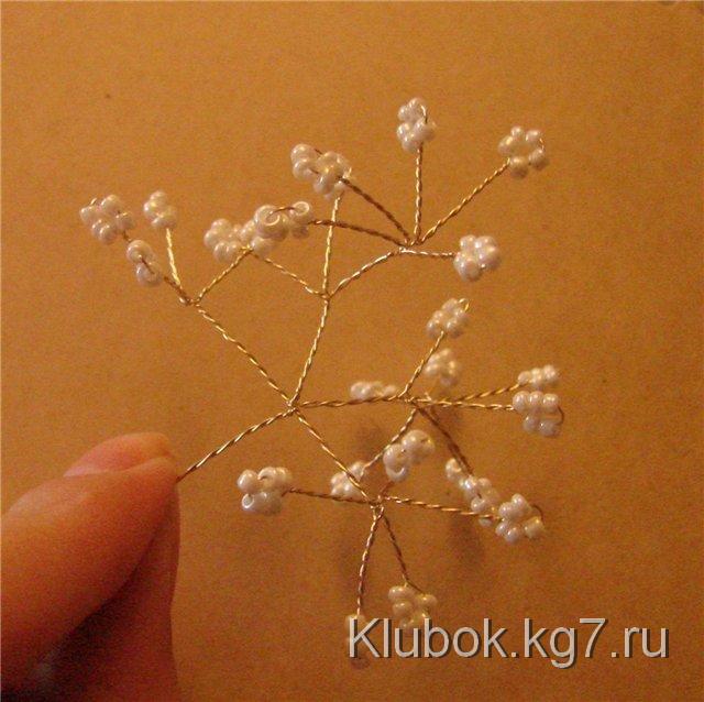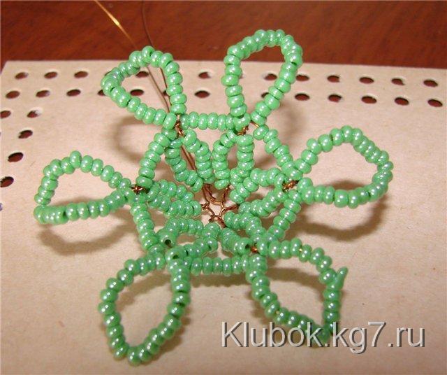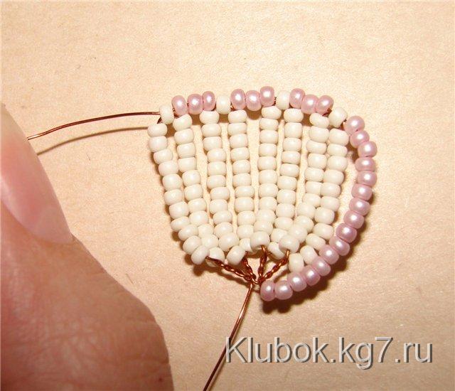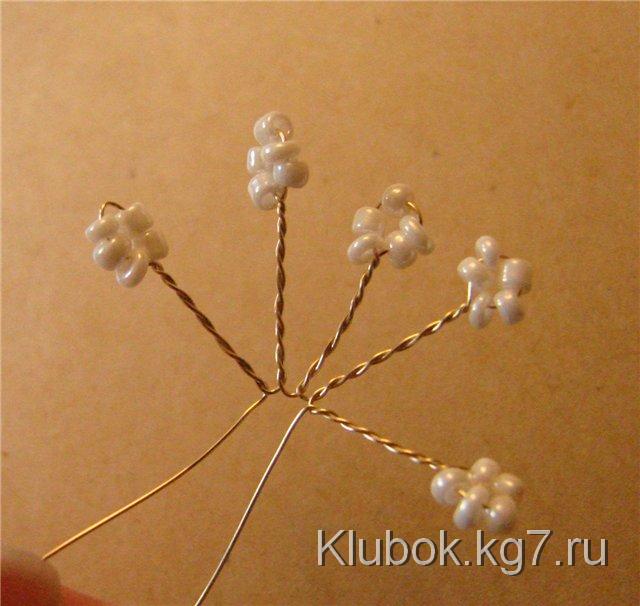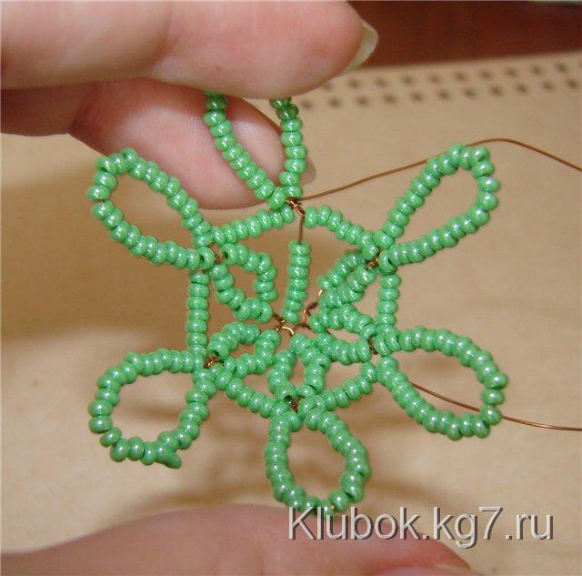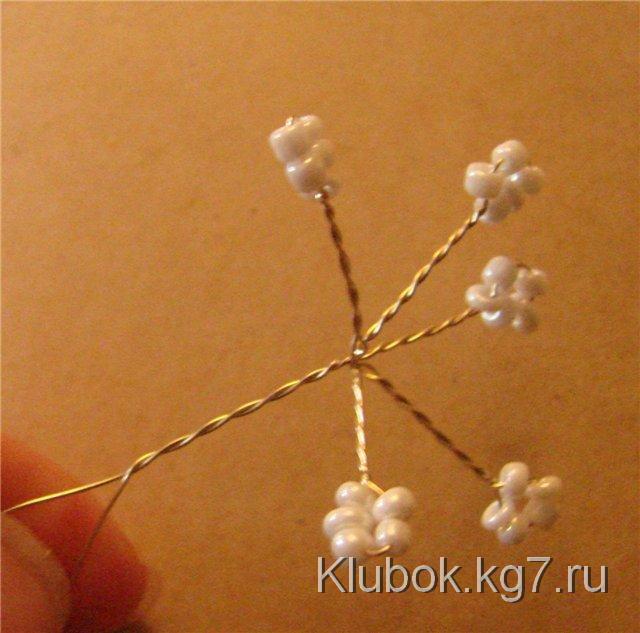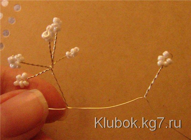 Повторяем все сначала (1 см бисера оставляем, из 2,5 (или 3) см делаем петельку и т.д), не забывайте оставлять проволочку, которая будет уходить на скрутку. Вот тут я показала, как это приблизительно делается