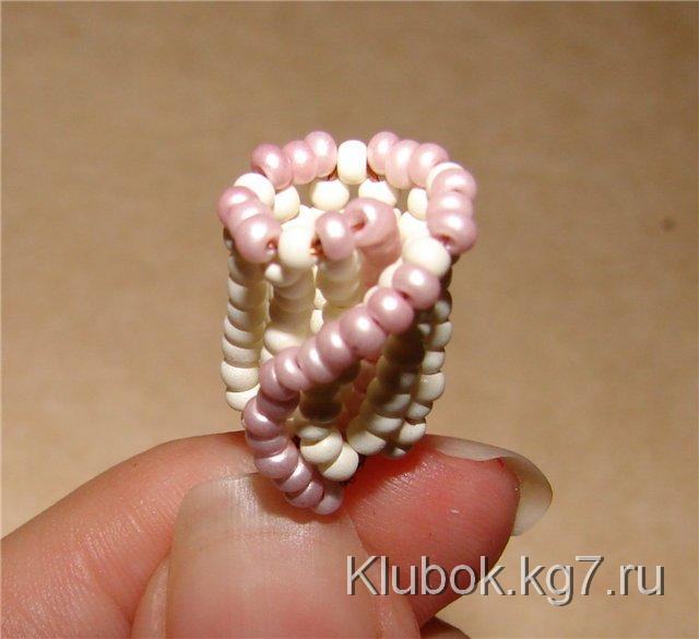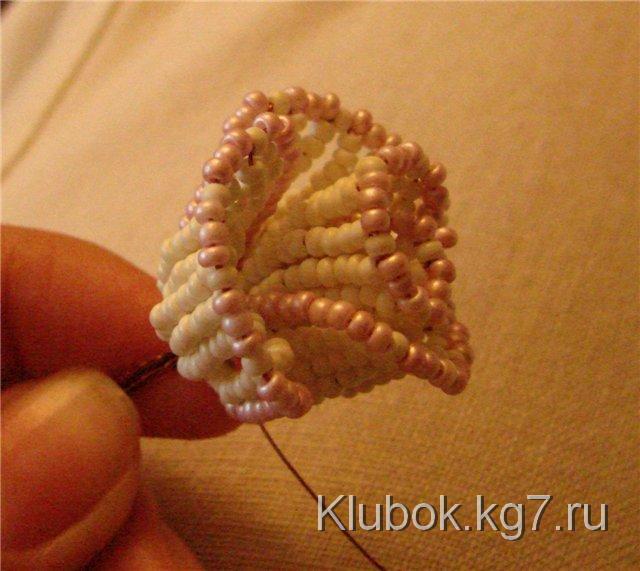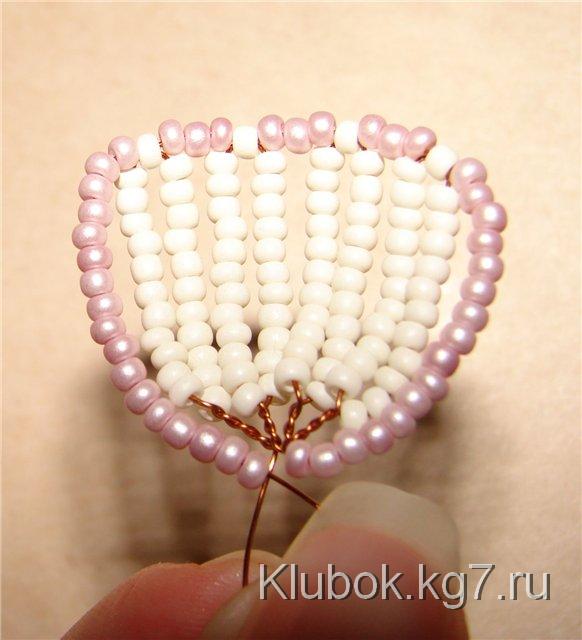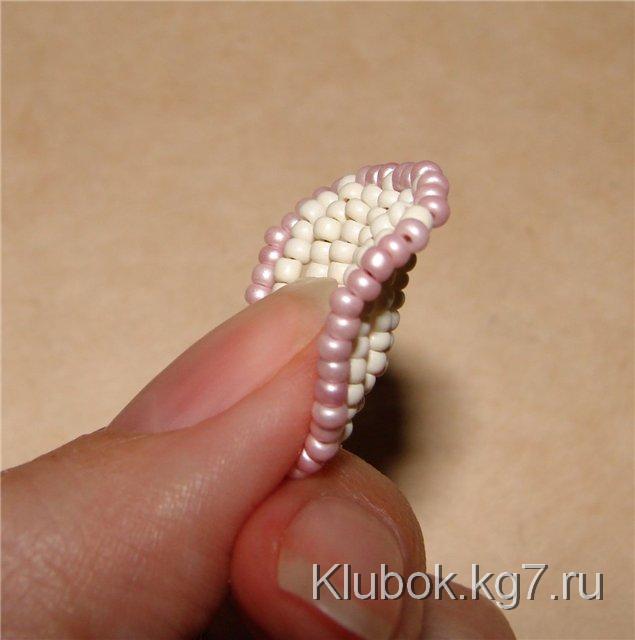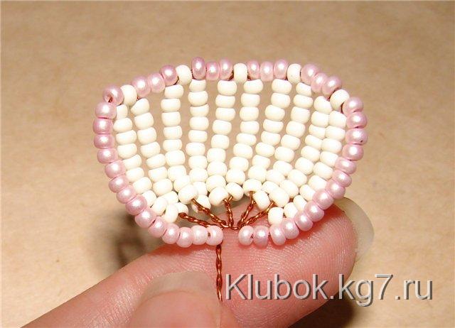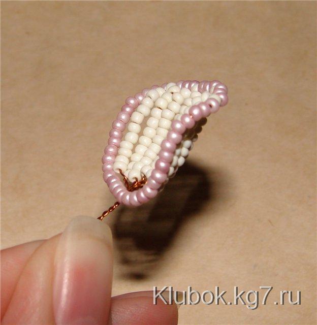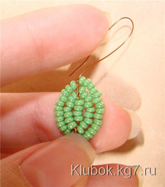 Петельки пальчиками сплющиваем. Желательно таким образом, чтобы одна бисеринка была вверху (ну как на фото две левые петельки)