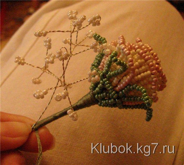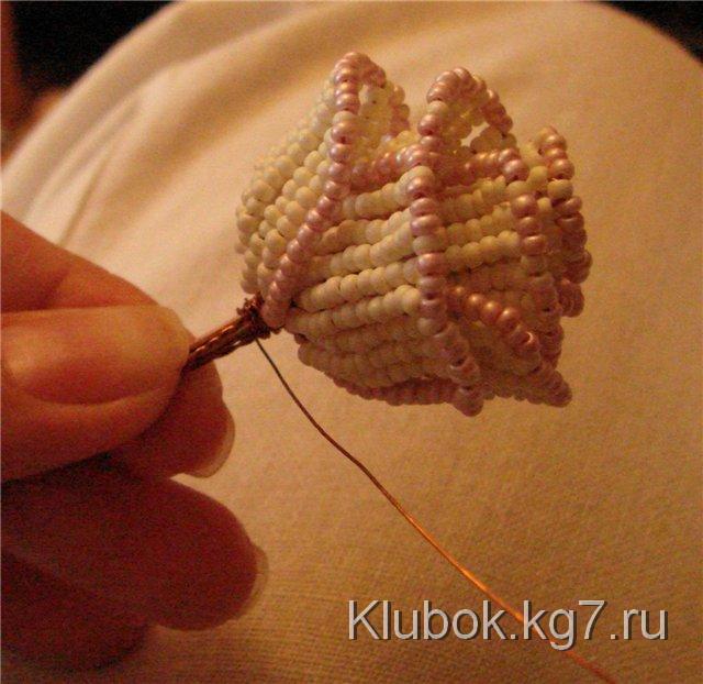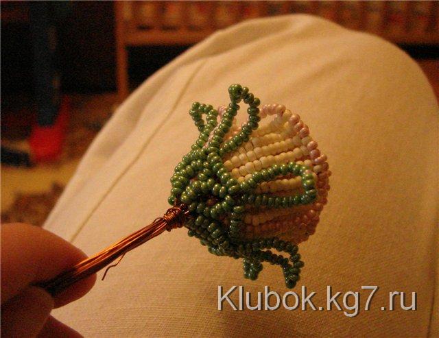 Осталось заправить торчащую сверху осевую проволочку. Продеваем ее в несколько бисерин, обрезаем.