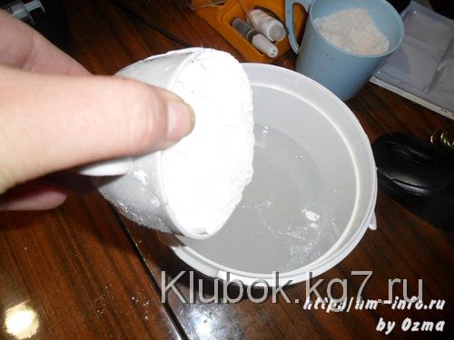 В чуть теплую водичку высыпаем алебастр (порошок) и быстро тщательно
