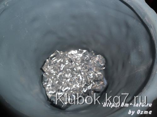 дерево, кладем немного фольги. Это делается для того, чтобы горшок впоследствии