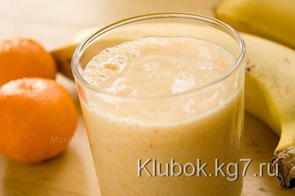 или кухонный комбайн поместите банан, добавьте дольки мандарина.