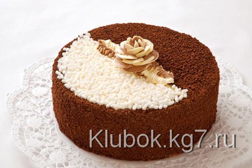 Весь секрет приготовления в том, что торт не пропитывается, вместо этого, крем мажется на только что вынутые из духовки, горячие коржи.