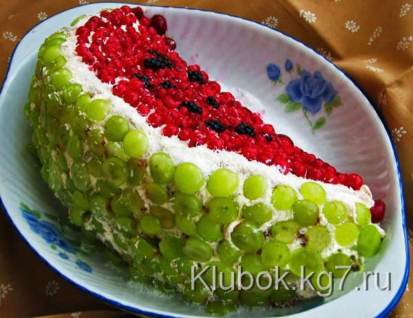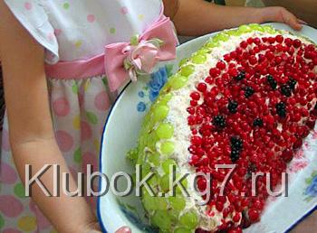 Торт «Долька арбуза»Klubokhttp://klubok.work/4/138/3919/Klubokhttps://klubok.work/css/image/top-logo-en.pngТортик с украшением зернами граната, мелким черным виноградом и вымоченными в мёде кусочками негорькой кожицы огурца.