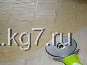 2. Тесто очень тонко раскатываем на поверхности,смазанной растит маслом. ОЧЕНЬ тонко,см фото №1-стол у меня прекрасно просвечивается,особенно темные,отбитые ножом(дети постарались)островки. Раскатывается быстро и легко если это делать в три захода(тесто разделить на 3 части)