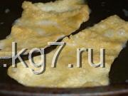 4. Быстро обжариваем во фритюре,один раз перевернув(я в сковороде,с большим количеством растит масла),до ЛЕГКОГО,золотистого цвета,на средне-маленьком огне. Достаем шумовкой и на бумажные полотенца. Аккуратно!Они очень хрупкие! Я кладу один кусок на другой в сковороде,зажимаю их двумя гладкими сторонами вилок,даю стечь маслу и переношу на бумагу(надеюсь,доходчиво обьяснила)