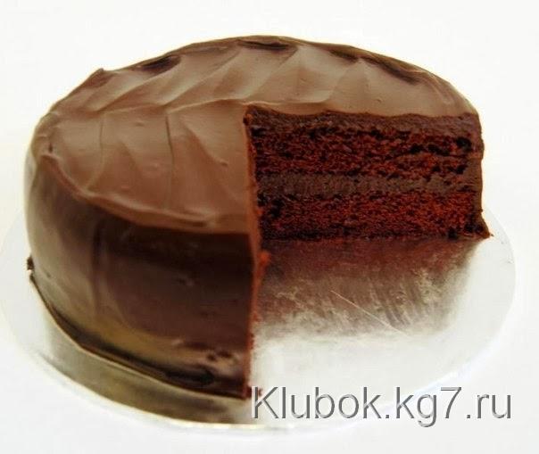 6.Приготовить глазурь. Сливки довести до кипения и вылить на шоколад. Оставить на 2 минуты и затем мешать, пока не получится густая, гладкая и блестящая глазурь. Смазать ею верх и бока торта.