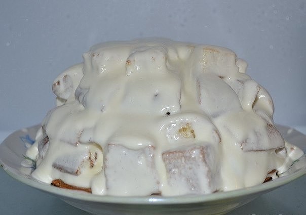 Взбиваем 0,5 л. сметаны с 1 ст. сахара.