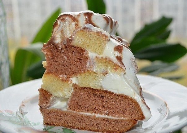 Варим глазурь:1 ст. л. сахара, 1 ст. л. сметаны, 1 ч. л. какао и 20 гр. сливочного масла. Сварить и остудить. Полить торт. Убрать в холодильник на 4 часа и более для пропитки.