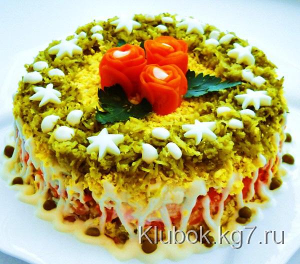 The salad is layered, each layer (grated or finely chopped) is smeared with mayonnaise.
