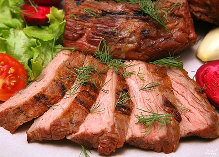 Способ приготовления: (Время приготовления — 90 мин) Вскипятим воду, добавим к ней перец и соль, специи и лавровый лист, перемешаем и дадим полностью остыть. Положим в остывшую воду мясо, накроем пленкой и на 4-5 часов оставим в холодильнике. Утром мясо обсушим, поперчим и посолим, приправим любимыми специями. Сделаем надрезы и нашпигуем мясо чесноком. Выложим мясо в рукав для запекания и положим туда лавровый лист. Завяжем пакет, сделаем надрезы и отправим в разогретую духовку на час, потом пакет разрежем и еще немного подрумяним мясо в духовке. Приятного аппетита!