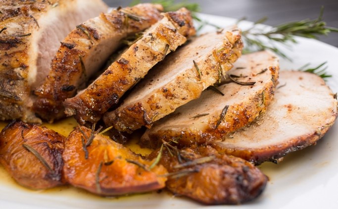 Ингредиенты: 2 кг свинины (биточная часть) 3-4 мандарина 3 веточки розмарина Сухая молотая горчица Мед Молотая гвоздика Соль Перец