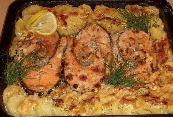 Картофельная запеканка с рыбойKlubokhttp://klubok.work/4/140/7752/Klubokhttps://klubok.work/css/image/top-logo-en.pngИнгредиенты: - 5-6 картофеля - 500 г рыбы - 2 помидора - 1 большая луковица - сыр - зелень - сливки Приготовление: Многие соблюдают пост, поэтому сливки можно заменить рыбным бульоном. И тогда верхний слой вместо сыра можно выложить лук со сладким перцем, будет не менее вкусно. Картофель режем кружочками потоньше, лук кольцами или полукольцами - кому как удобно, помидоры тоже можно нарезать кольцами или полукольцами, рыбку небольшими кусочками. Сыр не трем на терке, как обычно, а нарезаем тонкими пластиночками - как на бутерброд. Зелень мелко рубим. В сливки добавляем соль, перчик, можно еще какие-нибудь специи для рыбки. В форму сначала выкладываем слой картофеля, затем лучок, затем рыбка. Слегка присаливем, посыпаем зеленью и хорошо смазываем сливками (или поливаем - все зависит от жирности сливок). Затем помидоры - тоже смазываем сливками. Последний слой - сыр! Выкладываем пластиночки сыра так, чтобы они покрыли практически всю поверхность. Остатки сливок аккуратненько выливаем по краям. Запекаем минут 25-30 при температуре 200 - 220 градусов. Приятного аппетита.