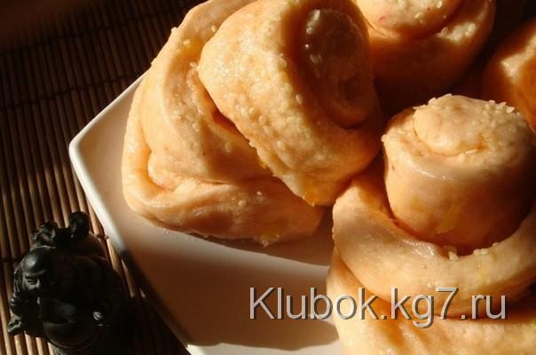 булочки в виде ?розочек?, смазать сиропом и дать тесту подняться ещё раз.