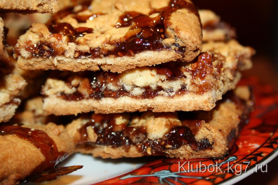 Яйца взбить с сахаром до пышности, влить растопленное сливочное масло, добавить соду и ванилин, всё тщательно перемешать. Муку сыпать до тех пор, пока тесто не примет консистенцию мягкого пластилина и не перестанет отлипать от рук. Разделить его на две части, примерно 2 к 1. Меньшую часть отправить в морозилку, большую - в холодильник где-то на час. Затем большую часть раскатать и выложить на смазанный маслом противень, выложить сверху равномерно начинку. Можно присыпать корицей, если джем яблочный. Сверху натереть меньшую част теста на крупной терке. Выпекать при 180 градусах до румяной корочки. Дать остыть и нарезать на порционное печенье.