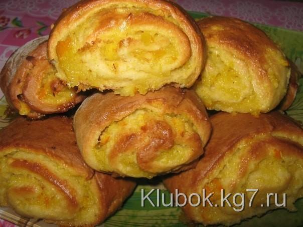 3. Тесто достать, раскатать выложить начинку, разровнять, завернуть в рулет, рулет готовый положить на время в холодильник, достать, порезать кусочками по 3см, выложить на противень, смазанный сливочным маслом, срезом вниз.