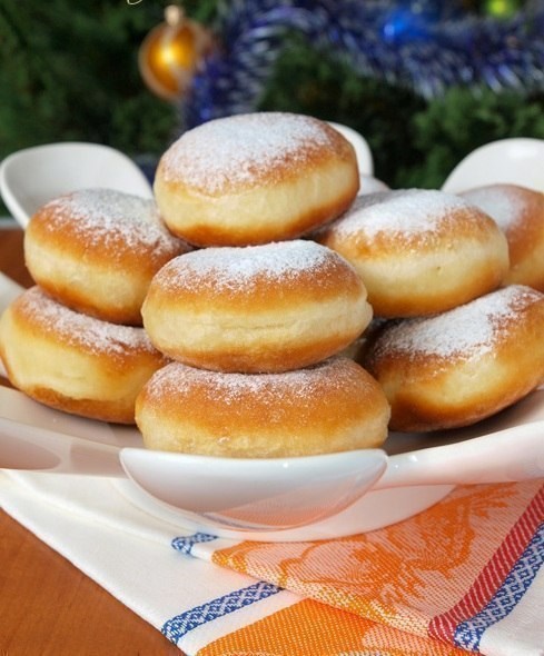 5. Then take the dough and roll it out to a thickness of 1 cm. Cut out circles with a glass or cup. Fry in a cauldron, the oil should be enough, they should float in it, so they don’t touch the bottom. Fry in hot oil!)