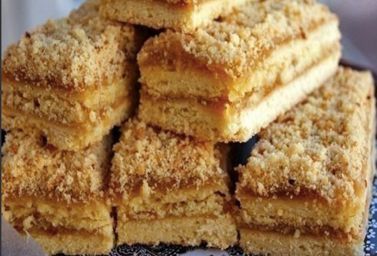 Приготовление: Первым делом, если вы хотите чтобы пирожное было именно таким вкусом, как в детстве, нужно сварить яблочное повидло (оно быстро варится). Именно яблочным повидлом промазывались пирожные и рулеты. Холодное масло порезать небольшими кусочками и взбивать миксером или в комбайне, добавить сахар, соль, ванильный сахар. Одно яйцо и один желток немного взбить в отдельной мисочке и вливать понемногу.. Соду (на кончике ножа) погасить уксусом и добавить в тесто Просеять муку Замесить тесто. Тесто немного охладить в холодильнике (например, пока варите повидло) Разделить тесто на 2 части (у кого большой противень, тесто можно не делить). Раскатать пласт толщиной примерно 4 -5 мм (потом выяснилось, что тесто в духовке не поднимается, поэтому это очень тонко, лучше 8 мм) Тесто накрутить на скалку И перенести на противень, застеленный бумагой Печь при 240 С до легкого зарумянивания (долго не пеките, иначе получится сухой рассыпчатый коржик, а не мягкий корж для пирожного. Т.к. духовки у всех разные, поэтому точного времени нет. Может кому-то нужно 8 минут, а кому-то 15...) Таким же образом испечь второй корж Коржи обрезать (обрезки пойдут на посыпку). Намазать первый корж 1/2 частью повидла Накрыть вторым коржом (т.к. коржи очень нежные и ломкие, в след. раз я их не буду сразу обрезать.Сначала обмажу нижний корж, не доходя до краев, положу второй, а потом обрежу. Кстати, так делали и в кондитерской у нас) Намазать верх оставшимся повидлом Посыпать крошкой