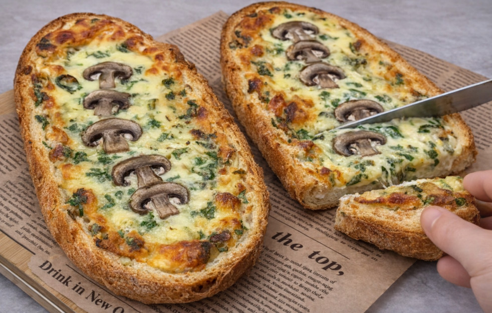 🥖Чіабатту або батон розрізаємо навпіл, щедро змащуємо маслом, посипаємо тертим сиром і випікаємо 10 хвилин при 180 градусах.