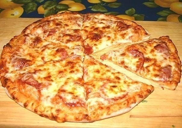For homemade pizza, delicious options include: sausages, mushrooms, onion rings, a little corn, tomatoes, and cheese. For a spicy flavor – pieces of pickles or olives.