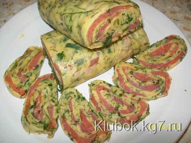 Cheese roll with red fishKlubokhttp://klubok.work/4/151/4137/Klubokhttps://klubok.work/css/image/top-logo-en.pngFor 4 servings: 250 g of hard cheese, dill and parsley, 300 g of lightly salted trout or salmon ( it's better to take smoked). Grate the hard cheese on a medium grater. Wash the dill and parsley well, dry and finely chop. Combine the cheese and chopped herbs in a small saucepan and mix thoroughly. Place the saucepan with the grated cheese and herbs in a water bath and heat, stirring constantly, until the cheese is completely melted. Let the cheese mixture cool slightly. Then place it on food wrap, cover with a second layer of wrap and, using a rolling pin, roll it into a thin sheet. Cut the fish into equal thin slices. Remove one layer of wrap, place the fish slices on the cheese sheet and roll it up with the help of the wrap. Put it in the refrigerator for 30 minutes. Before serving, cut into pieces. That's it, the roll is ready, enjoy your meal everyone!