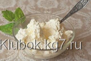 подготовленный творог. Посолить массу, добавить 1/2 стакана сахара, 1/3 стакана