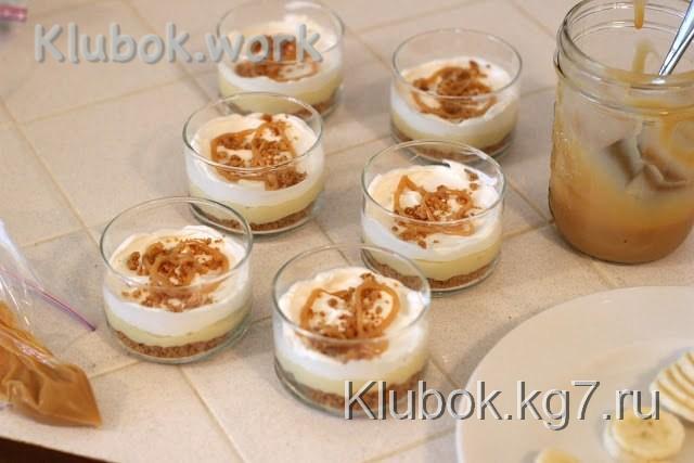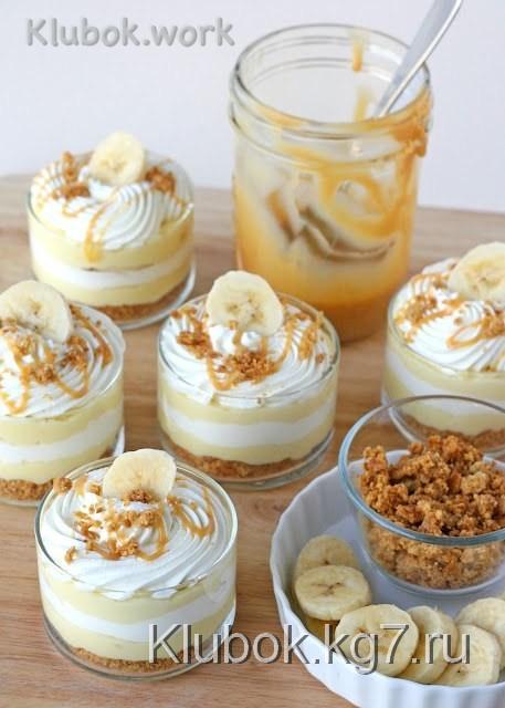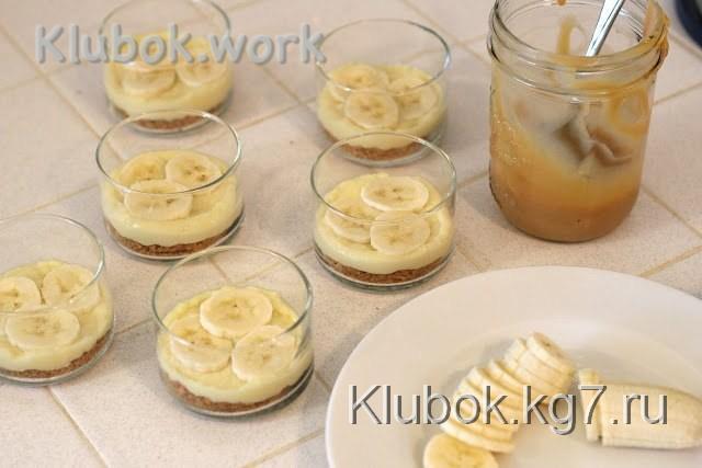 Ингредиенты:Банан – 2 штКарамельный соусВзбитые сливкиДля крема:Сахар – 2/3 стаканаКрахмал –