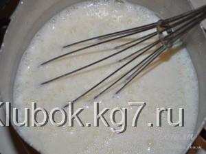 Приготовить основу крема: растереть яйцо с сахаром и мукой, добавить ванилин, влить молоко, перемешать венчиком, поставить на медленный огонь, варить до загустения, постоянно мешая.